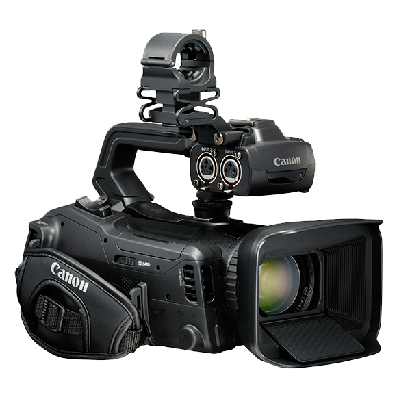 Canon XF405 4k videokamera med SDI ut. Stativ type Benro eller Manfrotto medfølger. Kan lagre til SD-kort, støtter ekstern mikrofon på XLR. I hardcase.